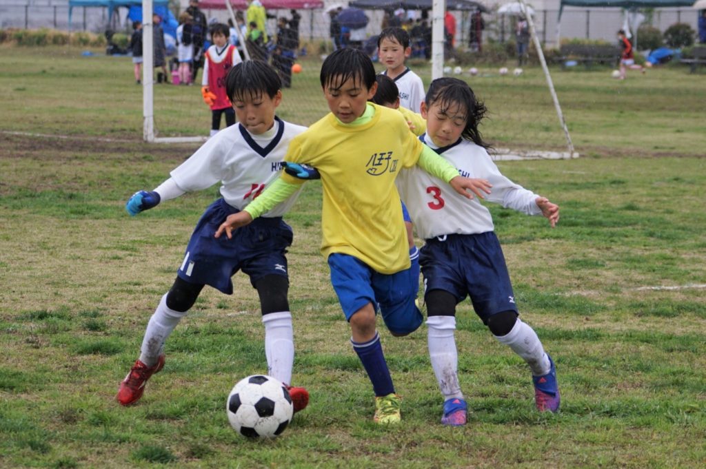 八王子CBXは日野市北川原グランドで、vs 館町SC、vs 東八王子FCの1次リーグ2試合に挑みました。4年生が少ない中、3年生との合同チームで、全員が必死になって立ち向かいましたが、残念ながら2戦2敗を屈し、力およばず予選敗退となりました。冬に戻ってしまったような冷たい雨の中、今年度初めての公式戦をよく頑張りました。風を引かないよう、気をつけてください。