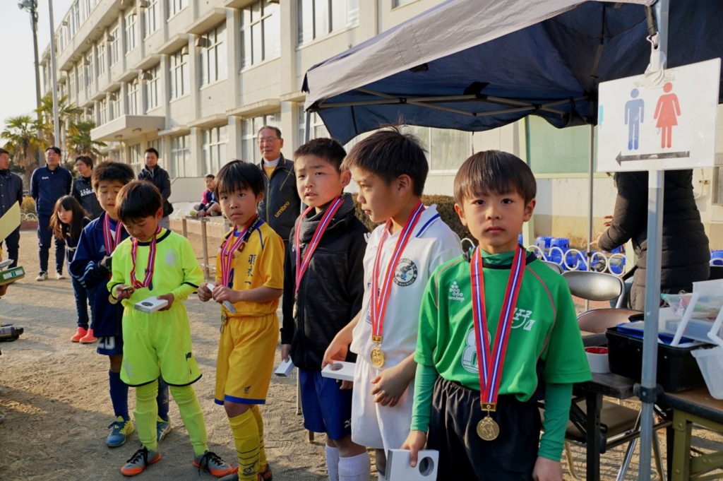サッカープレイヤーとして全員が同じ目標を持って、小学校生活最後までサッカーを続けたことは大変素晴らしいことです。そして今の皆さんは、ひと一倍の忍耐力、強い意志、友情を築くことができました。中学生としての新たなスタートを迎えるにあたり、不安や戸惑いもあるかと思いますが、何事にも勇気と自信を持って望んで下さい。皆さんのご活躍を健闘しております。