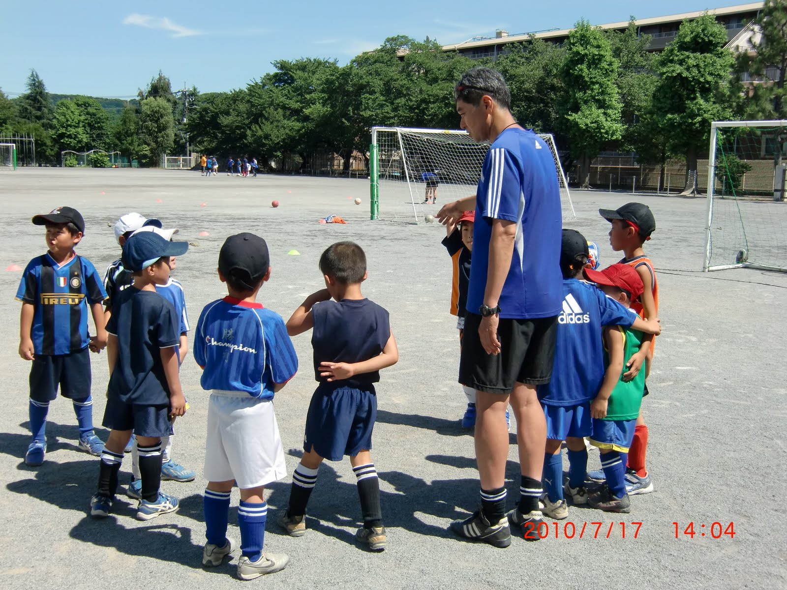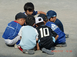 7月17日(土)、由井一小で行われた一年生・未就学の練習に、卒団生で中一のシュンとタツヤが遊びにきました。