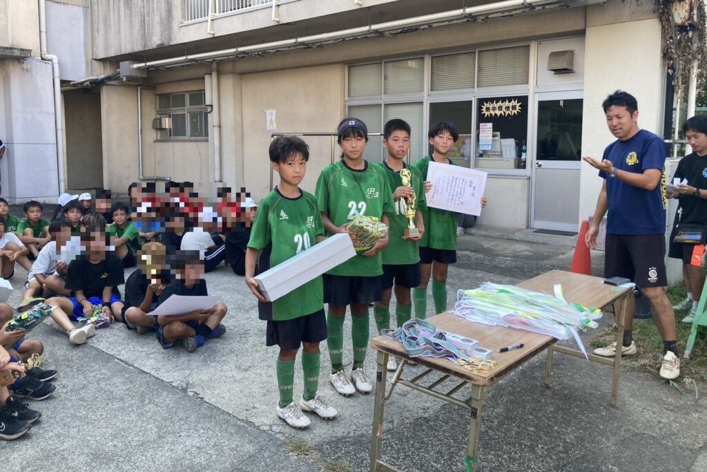 初戦で大差で敗れたものの、士気が下がることなく最後までよく頑張りました。負けた悔しさを味わうことも必要です。PK戦は全員が決められるとは限らず、失敗してしまった仲間の気持ちを感じることも必要です。最下位でしたが二日間の4試合で色々なことが経験となり、夏の終わりに一段と成長しました。